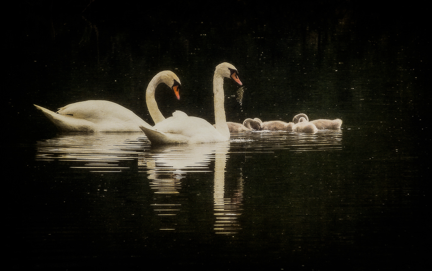 Swan Family feeding